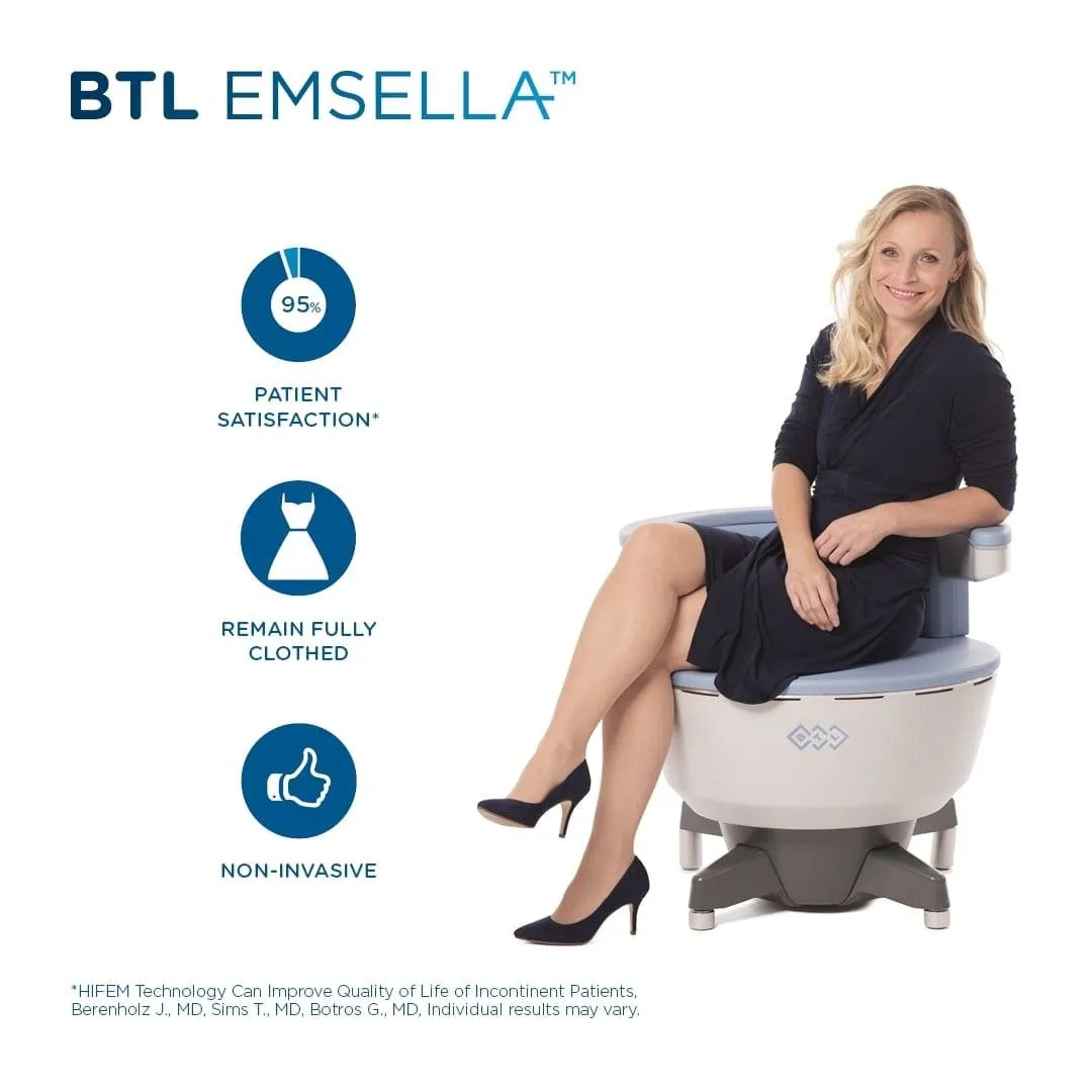 Body ageing, childbirth, and menopause can lead to incontinence. Now you can let urinary incontinence and bladder problems be a thing of the past with our new Emsella® Chair!